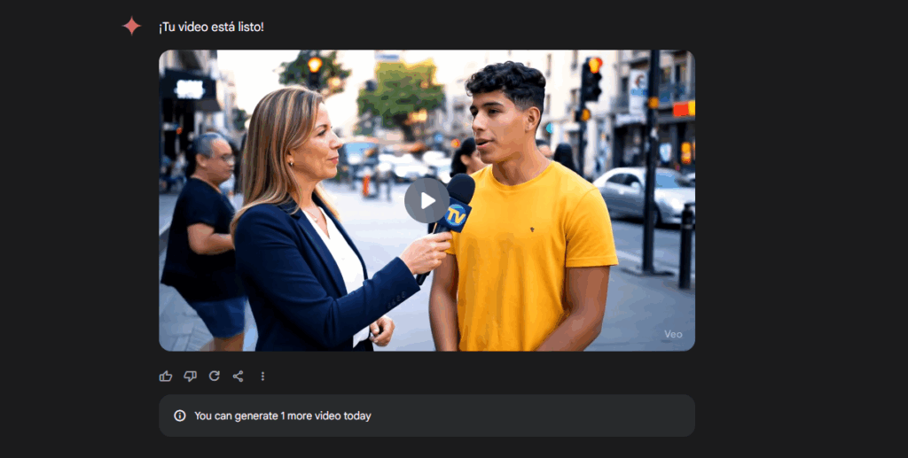Recientemente, Google introdujo la función Veo 2 en Gemini Advanced que permite generar videos de alta calidad de hasta 8 segundos a 720p directamente desde un prompt de texto. Una vez seleccionas el modelo “Veo 2” en Gemini, envías la descripción —cuanto más detallada, mejor— y obtienes un clip que puedes compartir al instante en redes sociales .